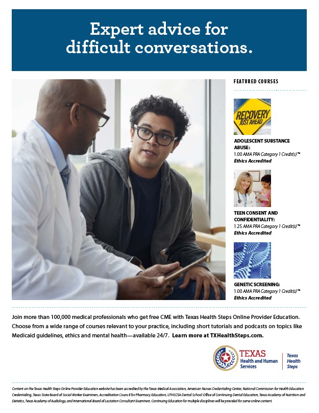 Join more than 100,000 medical professionals who get free CME with Texas Health Steps Online Provider Education.
